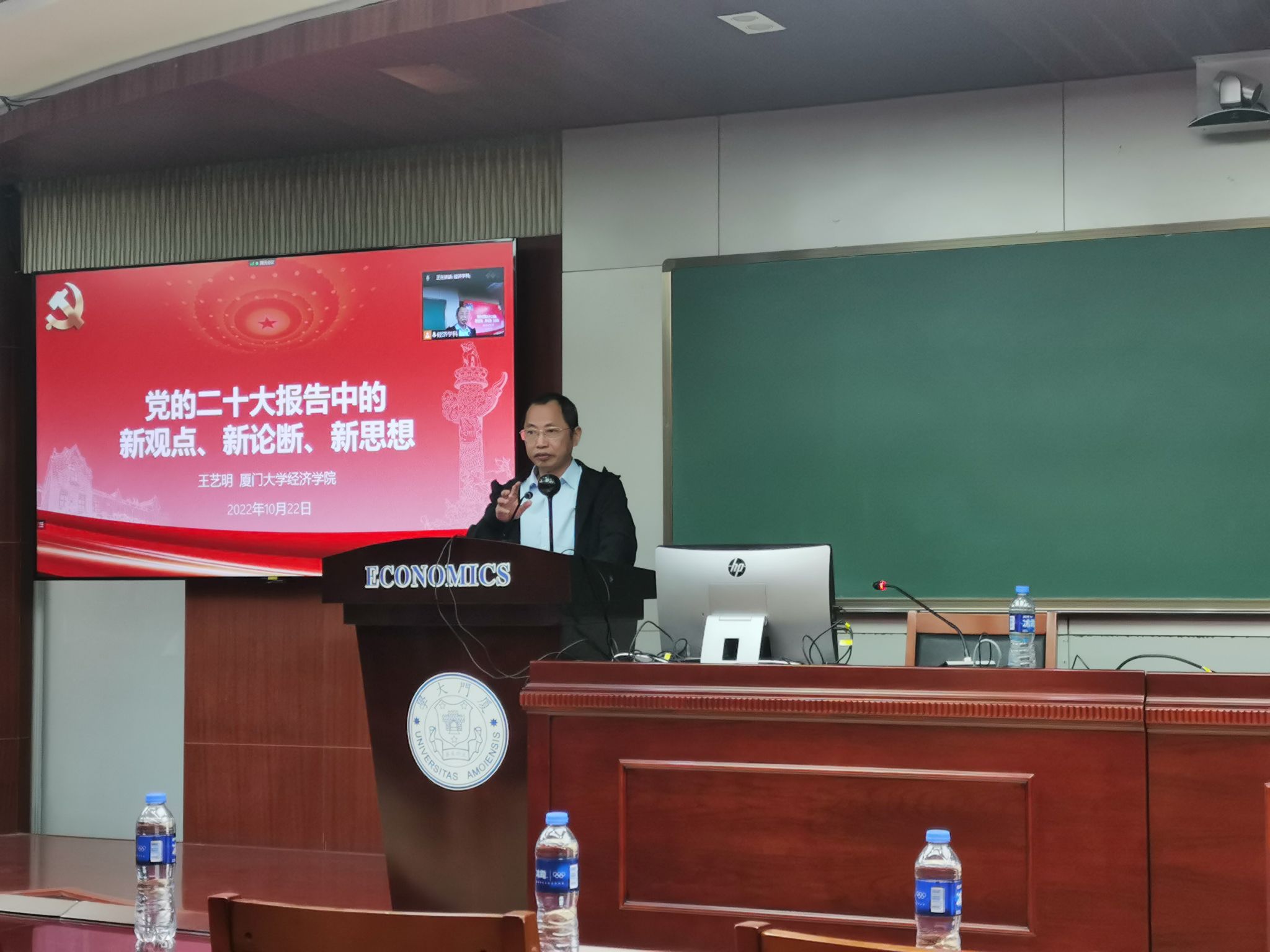 王艺明以“党的二十大报告中的新观点、新论断、新思想”为题,紧扣大会主题、新时代十年来的三件大事和伟大变革、中国式现代化、六个坚持、“五个必由之路”等重要内容,深入解读党的二十大报告的核心要义,作了一场主题鲜明、内容全面、深入浅出的精彩讲座。