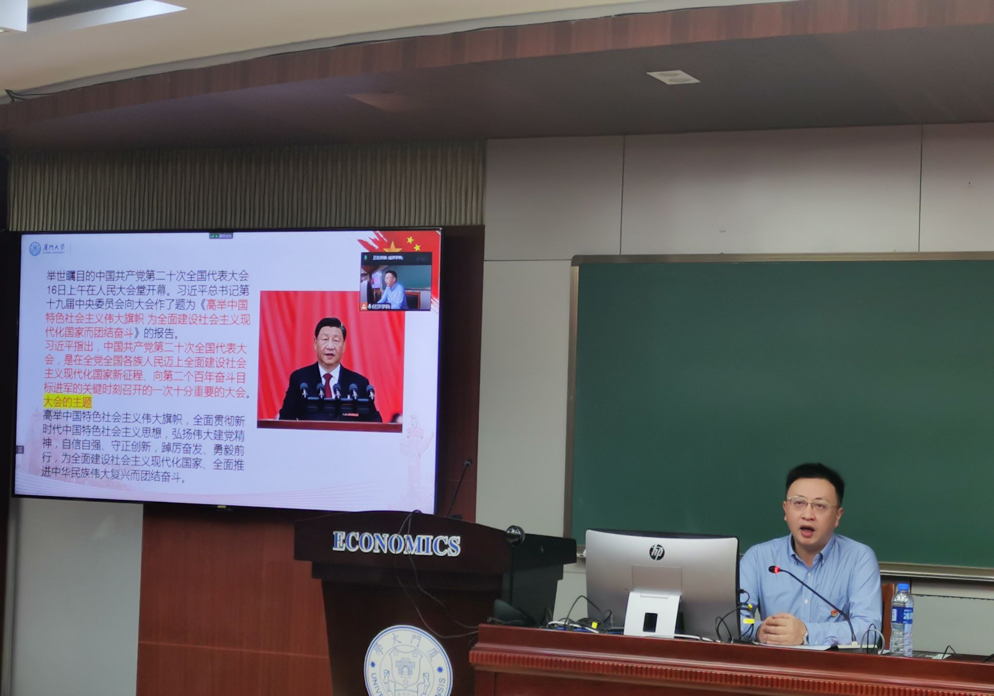 讲座中,王艺明以图表形式全面展现了新时代十年来中国在经济上取得的历史性成就,并结合欧洲社会贫富差距、美国“零元购”风潮等现象,生动地阐述习近平总书记以人民为中心的发展思想,还通过对比西方国家现代化发展历程和现阶段社会矛盾,解构中国式现代化的本质要求和中国特色。随后,从财政学专业的视角,以中肯蒙内铁路建设为例,解析“一带一路”倡议,并深刻解读“高质量发展是全面建设社会主义现代化国家的首要任务”所体现的内涵要求和前瞻性思维。