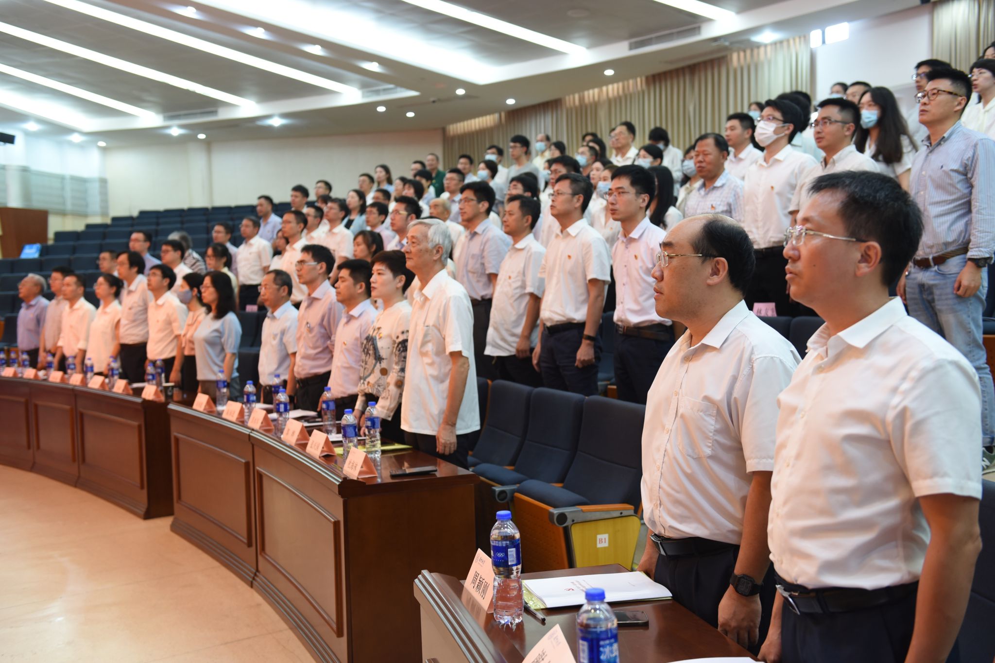 大会在庄严的国歌声中拉开帷幕。bat365官网登录入口党委书记黄鸿德代表学院党委向大会作题为《牢记嘱托砥砺奋进 知行合一追求卓越——为建设中国特色、世界一流经济学科矢志奋斗》的报告。