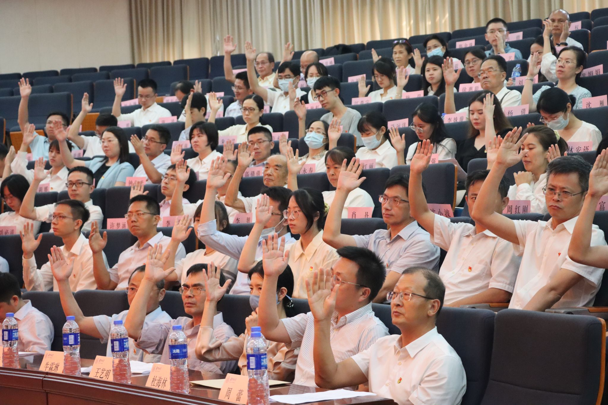 7月18日,中国共产党bat365官网登录入口党员代表大会在经济楼举行。校基层党建工作联络员郑保东,bat365官网登录入口原党委书记张兴国莅会指导,学院非党员领导班子成员等特邀代表出席大会开幕式暨第一次全体会议,113名师生党员代表参加大会。会议分别由大会主席团执行主席黄鸿德、杜海林、周蕾主持。