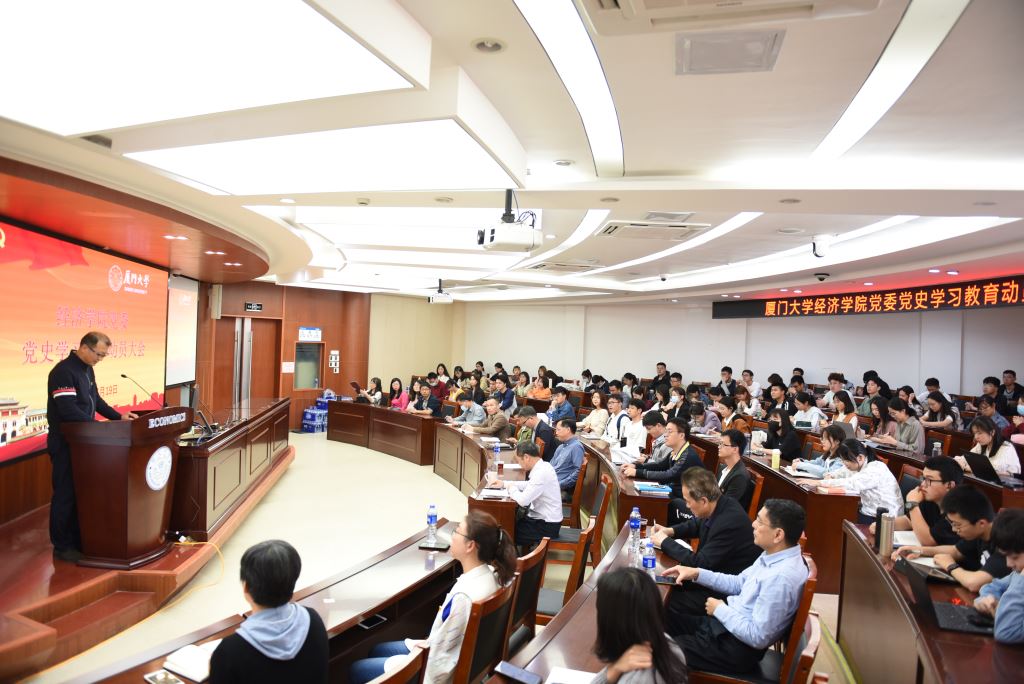 黄鸿德强调,开展党史学习教育是牢记初心使命、推进中华民族伟大复兴历史伟业的要求;是坚定信仰信念、在新时代坚持和发展中国特色社会主义的必然要求;是推进党的自我革命、永葆党的生机活力的必然要求。要严格按照党中央和校党委的部署,紧密结合自身改革发展实际,扎实开展党史学习教育,从学习党史中汲取继续前行的强大动力,把学习成效转化为促进学院事业发展的具体行动,以奋发昂扬的状态投入到中国特色、世界一流经济学科发展建设中去,以优异成绩迎接建党百年。