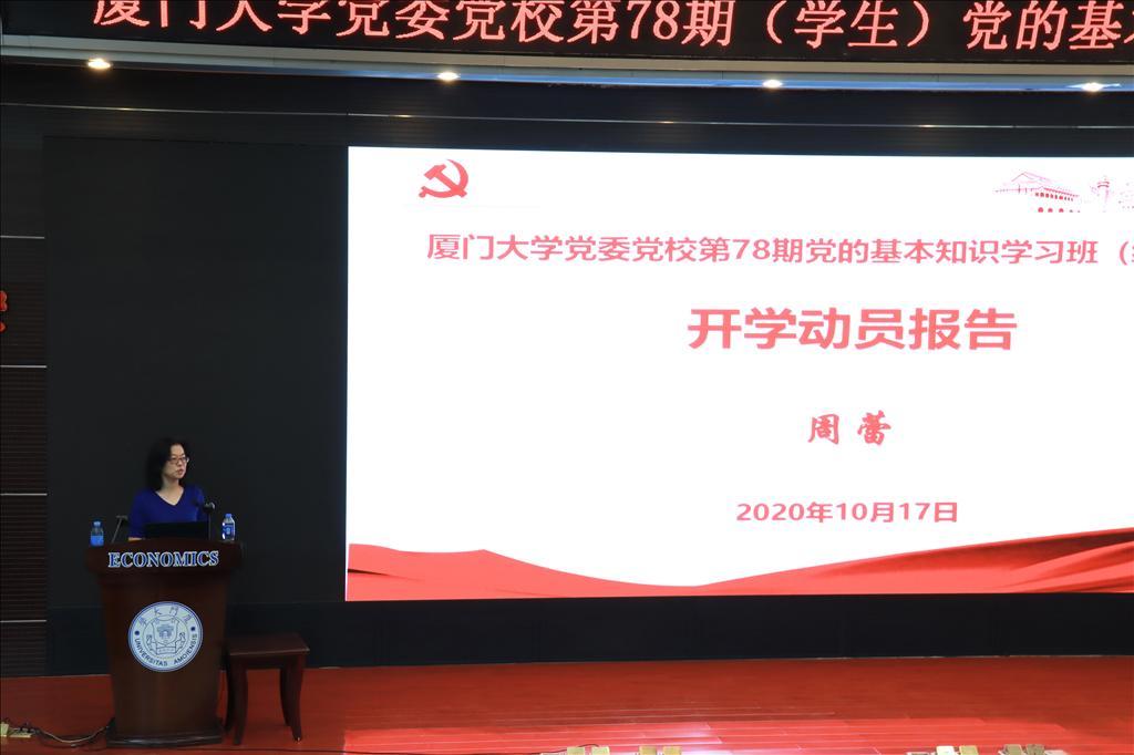 10月17日上午,bat365官网登录入口党委党校第78期(学生)党的基本知识学习班(bat365官网登录入口)开班仪式在bat365官网登录入口N402顺利举行。本期学习班由bat365官网登录入口与王亚南经济研究院115名学员、台湾研究院4名学员组成。bat365官网登录入口党委副书记周蕾出席开班仪式并作动员报告。