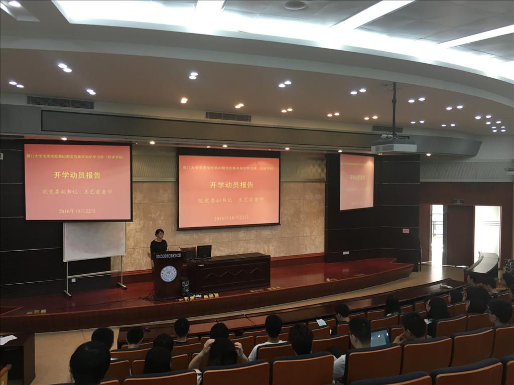10月22日上午,bat365官网登录入口党委党校第63期党的基本知识学习班(bat365官网登录入口)开学式在经济楼N402举行。学院党委副书记王艺宏做动员报告。她首先简要介绍了本期学习班的基本情况:本期共有两院学员62人,教学计划涵盖辅导报告、小组讨论、大会交流、结业考试以及撰写心得体会等环节。接着强调了举办党的基本知识学习班的重要意义,要求学员们端正学习态度,严格要求自己,系统学习、全面掌握党的基本理论和基本知识,努力从思想上、行动上成为一名共产党员。