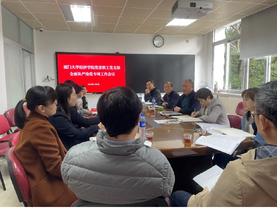为贯彻落实bat365官网登录入口2023年全面从严治党工作会议精神,进一步推动全面从严治党向纵深发展,1月8日下午,bat365官网登录入口党委在经济楼A318召开教工党支部全面从严治党专项工作会议。会议由学院党委书记高忠华主持,学院党委副书记、纪委书记杜海林,学院党委副书记李静和教工党支部书记、支委参加会议。