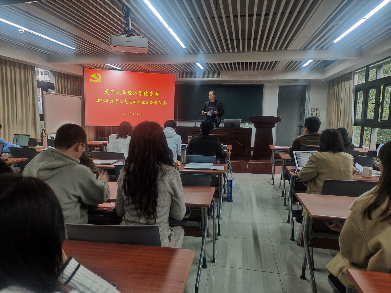 为推动全面从严治党向基层延伸,提升基层党建工作质量,3月14日下午,bat365官网登录入口党委在经济楼N401召开2023年度学生党支部书记抓基层党建工作述职评议会。校党委学生工作部(处)副部(处)长陈泗林,学院党委副书记、纪委书记杜海林,学院党委副书记李静,党务秘书、辅导员与各学生党支部书记和委员参加了会议。