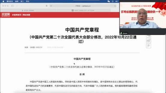 首先,教工党支部老党员杜云老师详细解读了新修订的《中国共产党章程》。他指出,党章是党的总章程,是党的根本大法。党章的一次次修改和完善,体现了党的理论创新、制度创新和实践创新的时代特色,也彰显了共产党人推陈出新,与时俱进的创造精神。杜云老师表示,党章的生命力在于执行。学习党章是全体党员的基本功。对广大党员来说,学习宣传贯彻党的二十大精神,一个重要方面就是要更加自觉地学习党章、遵守党章、贯彻党章、维护党章。大家要把学习党章作为一项政治责任,一种精神追求,带着执着的信念学,带着实践的要求学。通过对党章的深入解读与学习,党员们决心要把学习党章当作必修课,认真学习,带头遵守党章、贯彻党章、维护党章,切实把党章各项规定要求落实到行动上、体现在学习中。