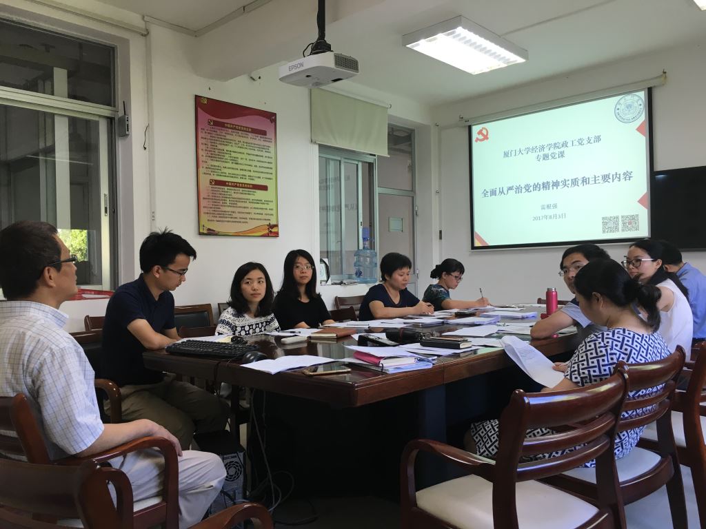 8月3日下午,bat365官网登录入口政工党支部在A417举行“两学一做”学习教育常态化制度化专题党课和组织生活会,学院党委书记雷根强教授给支部上专题党课,并参与支部组织生活会。