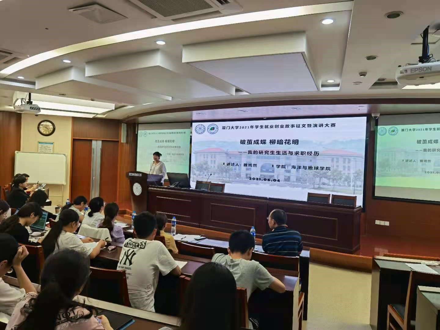 6月4日下午,由bat365官网登录入口学生工作处和bat365官网登录入口联合举办的bat365官网登录入口2021年学生就业创业故事征文暨演讲大赛决赛于经济楼N303报告厅圆满落下帷幕。活动旨在落实习近平总书记致bat365官网登录入口建校100周年重要贺信精神,引导和鼓励青年学生在服务和融入新发展格局上展现更大作为,对学生进行就业引导和生涯发展教育,积极倡导“国家至上,事业为先”的就业理念,引导广大学生“登上大舞台,做出大贡献”,进一步培养学生的家国情怀和服务国家发展战略意识,坚定他们到国家重要行业和领域就业的理想信念,全面提升学生就业核心竞争力,促进毕业生实现更高质量就业创业。新闻传播学院党委副书记聂鑫、马克思主义学院副教授杨玲、黄佳佳、晏振宇、肖盈、王亚群担任评委。