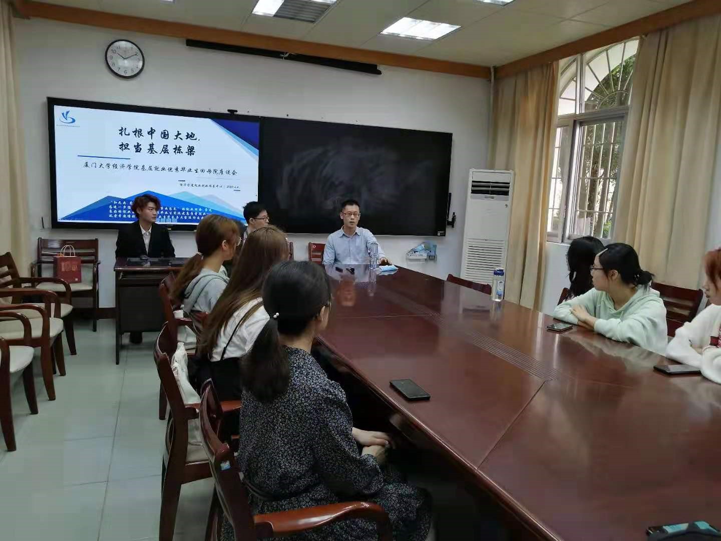 2021年4月4日下午,为落实习近平总书记来闽视察重要讲话精神,引导和鼓励青年学生在服务和融入新发展格局上展现更大作为,奋力谱写全面建设社会主义现代化国家厦大篇章,bat365官网登录入口就业创业指导中心邀请到两位百年校庆期间返校为母校庆生的优秀基层就业者与同学们面对面分享自己的求职经验与成长发展。