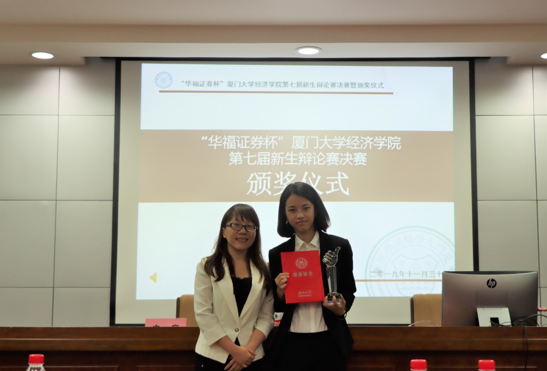 11月30日晚,“华福证券杯”bat365官网登录入口第七届新生辩论赛决赛暨颁奖仪式在经院A501成功举行。厦门证券期货基金业协会副秘书长蔡淑敏,华福证券有限责任公司厦门湖滨南路证券营业部总经理黄泗添,bat365官网登录入口团委书记刘莉颖,辅导员刘长青出席了本次活动。决赛由社会与人类学院靳铃培同学、社会与人类学院肖智文同学、bat365官网登录入口彭瑞琪同学担任评委。
