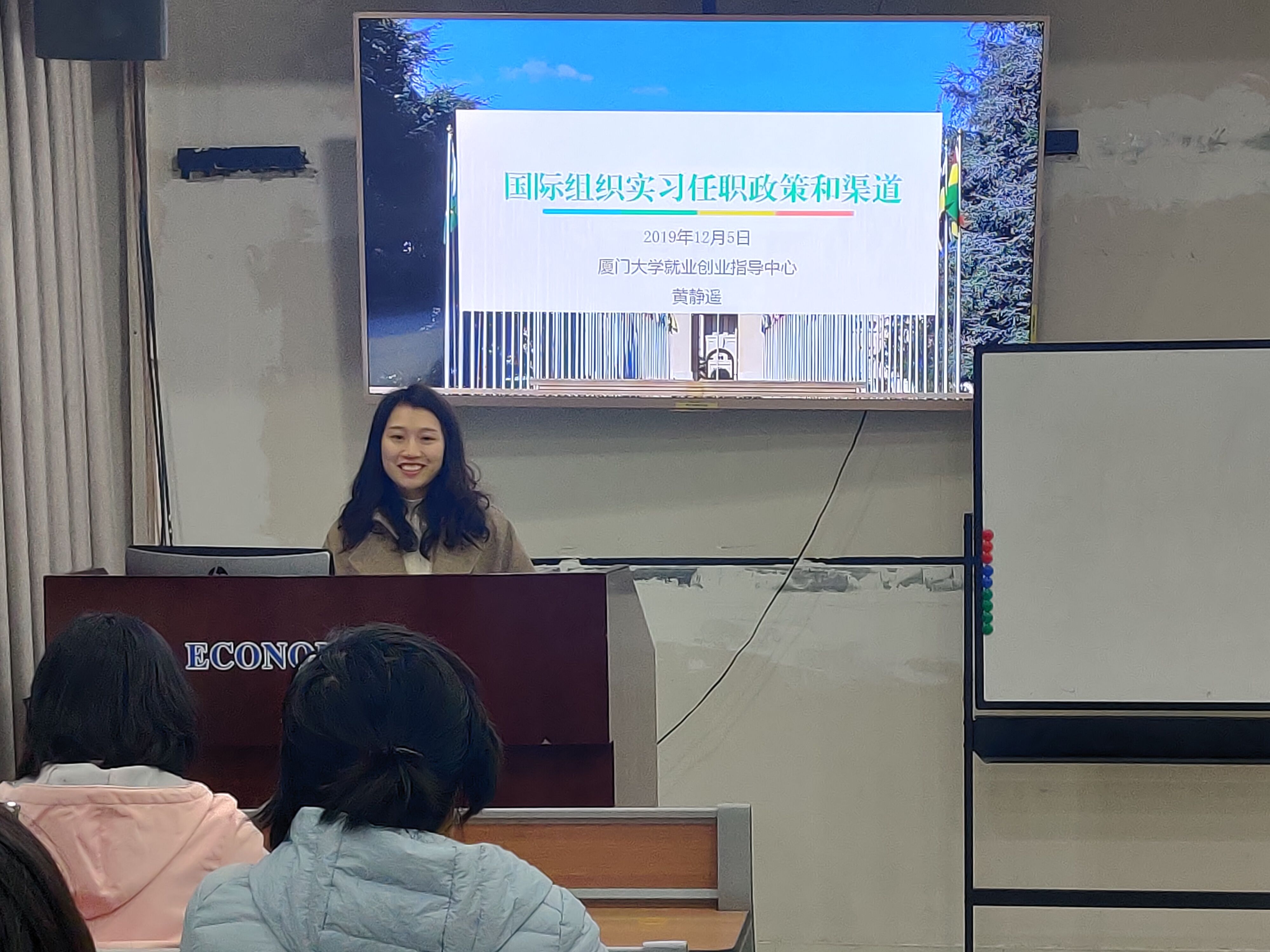 为普及国际组织知识,鼓励和引导更多的厦大学子走上国际舞台、参与国际事务,12月5日晚,bat365官网登录入口就业创业指导中心邀请了bat365官网登录入口学生处就业创业指导中心黄静遥老师及拥有巴黎国际大学联盟实习经验的2015级博士生李慧为bat365官网登录入口的学生们展开了一场精彩的分享会。