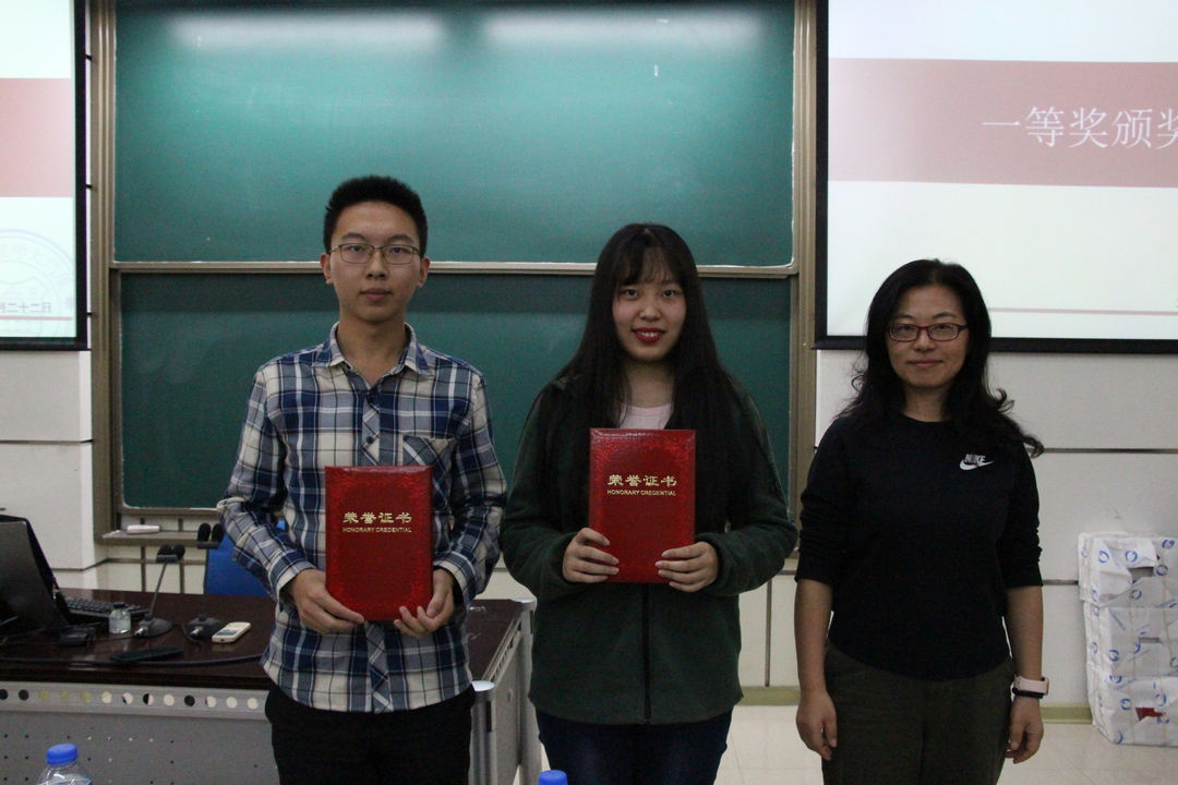 在杜宪同学述职后,颁奖嘉宾经济系党支部书记张兴祥与经济系副主任赵建为获得二等奖的同学颁发了荣誉证书。