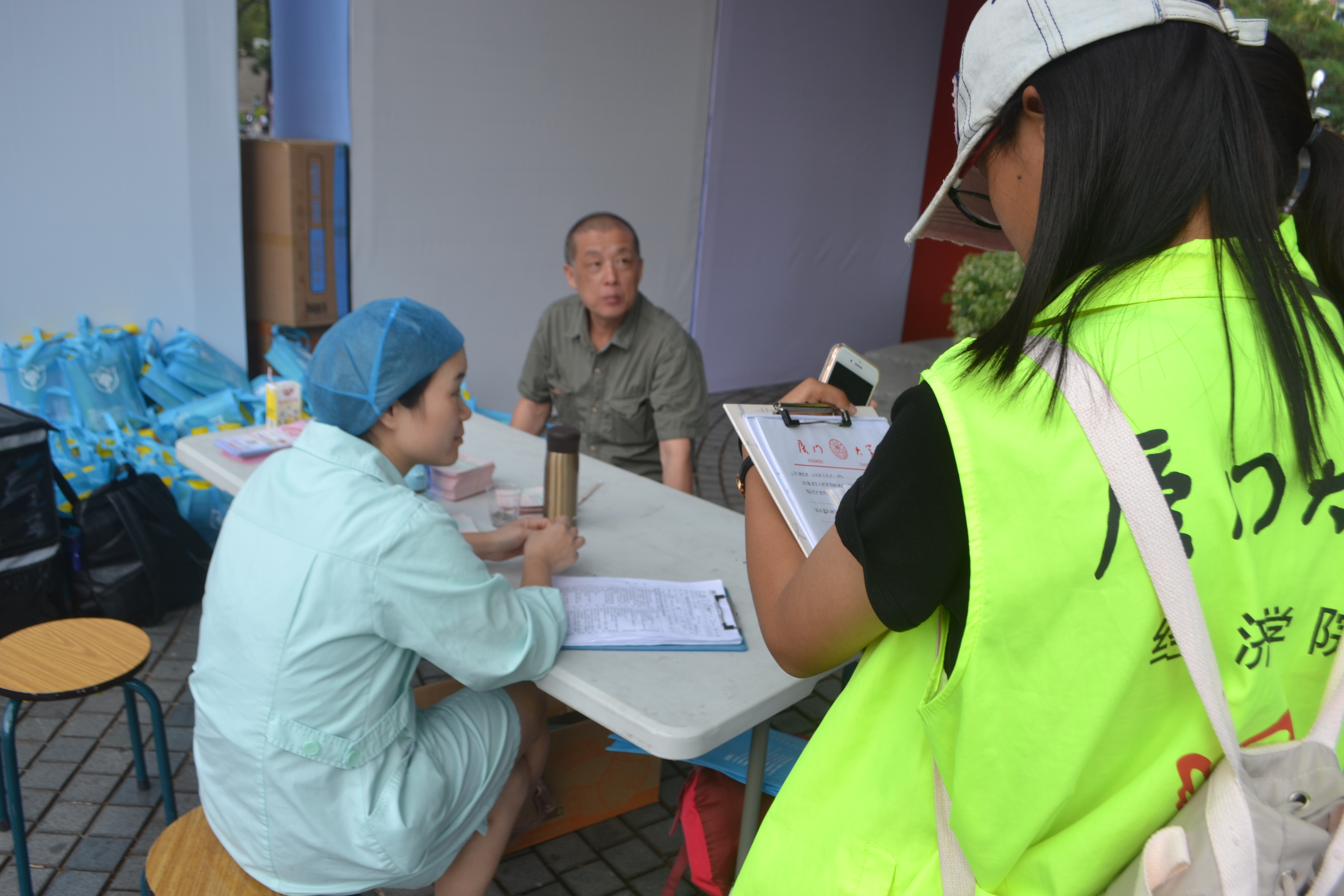 除了采访了来献血的的同学们,“诠释爱”志愿队还有幸采访到了血协的工作人员和专业的医护人员,他们从更专业的角度为我们解答了疑惑。针对有些学生认为献血影响身体健康而不愿意来献血的问题,他们给出的解答是:献血完的前几天,部分同学的身体会出现不舒服的现象,但长期不会有影响。无偿献血是符合法律规范的献血形式,200,300,400毫升的血量均为法律许可。并且,献血在一定程度上可以促进人体血液循环从而促进新陈代谢。本次的献血活动由正规的献血机构组织,与大街上的不正规献血车全然不同。专业的医护人员会根据献血同学的个人体检状况,来建议是否献血以及合理的献血量。同时,工作人员提到,采集的血液会用于医院的血库,目前医院对血液的需求量还是很大,随着来厦门看病就诊的人数增多,医院血库的存量与病人的需求间的缺口在进一步扩大。此外,本次献血活动的参与者献的是全血,而在具体的病情个例中,也许病人需要的只是血液中的特定成分,例如血小板。因此,血协呼吁大家能够去献血机构专门去献血小板,时间可能是1到2个小时,来为病人们献上一份温暖。