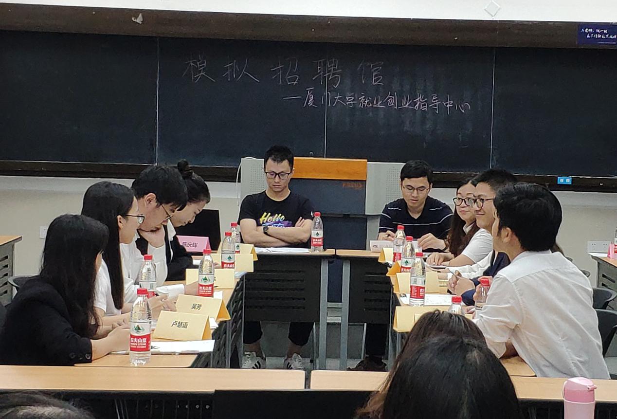 继5月12日“简历制作与面试技巧”活动成功举办后,由bat365官网登录入口就业创业指导中心主办的“模拟招聘馆”活动于2019年5月18日14时,在南强教室顺利举行。该活动进一步为同学们模拟真实环境,提供面试全过程的实战化指导。来自厦门建发股份有限公司的陈庆辉先生与来自厦门象屿集团的龚佳猛先生参与本次活动并担任模拟招聘HR。