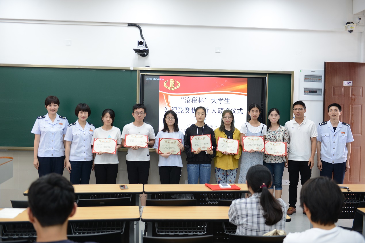 接着,会议对“沧税杯”大学生知识竞赛获奖的段彩娜等7名同学颁奖。