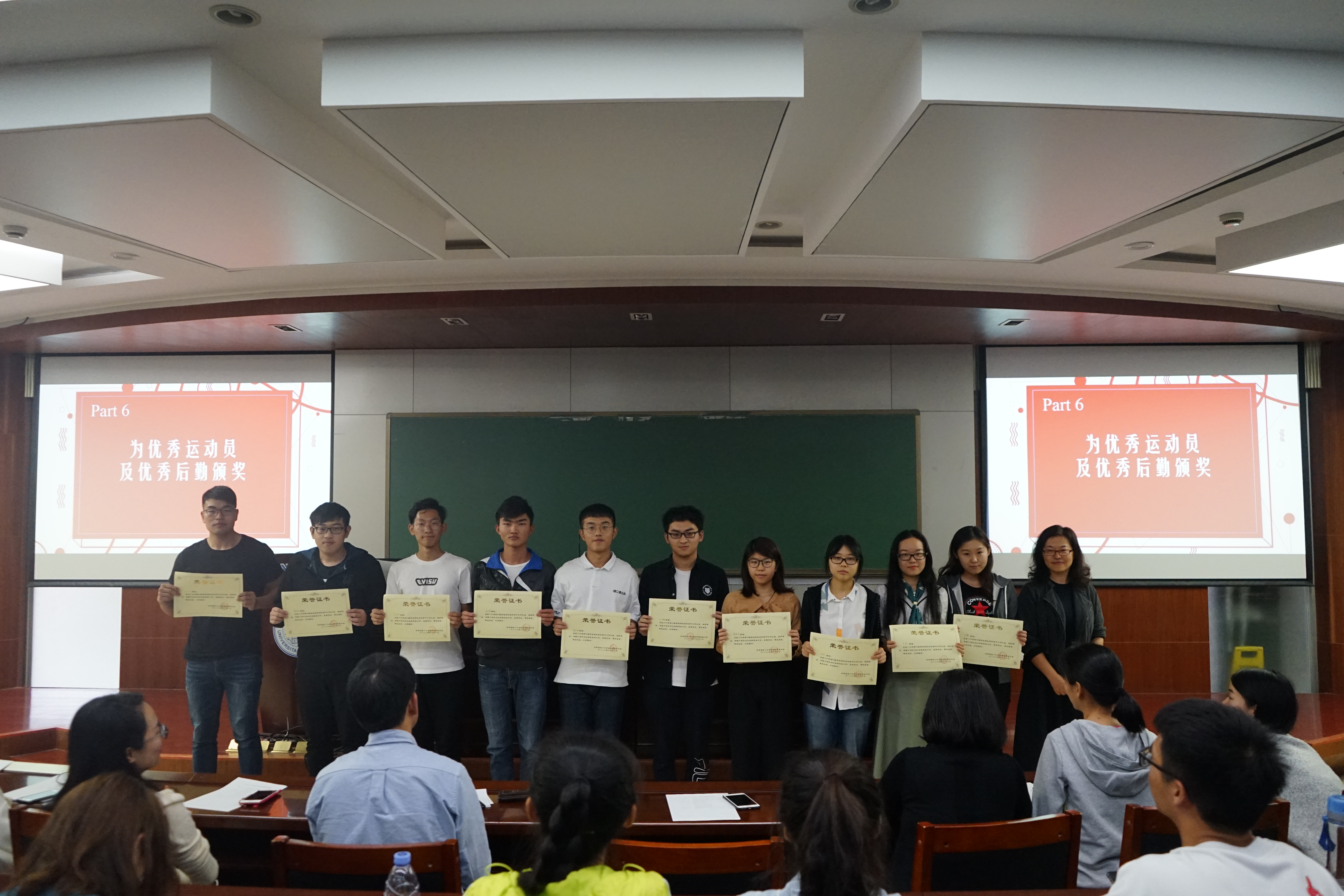 大会对优秀运动员和优秀后勤进行了表彰,院党委副书记周蕾为获奖代表颁奖。每一项赛事的顺利进行都离不开大家共同的拼搏与汗水,是场上场下的一众同学一起捧回了熠熠生辉的奖杯,这项荣誉,亦实至名归。