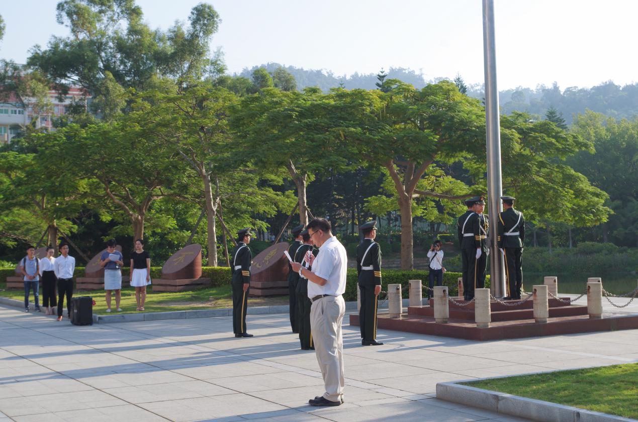 2018年10月1日上午,正值祖国母亲69岁生日之际,bat365官网登录入口在嘉庚广场组织了观看升旗仪式的爱国主义教育活动。bat365官网登录入口党委副书记林东伟、学生工作处处长夏侯建兵、bat365官网登录入口党委副书记邱旺土及各学院师生代表共300余人参加了此次升旗仪式。bat365官网登录入口、王亚南经济研究院2017级研究生全体党员参加了此次仪式,并重温了入党誓词。