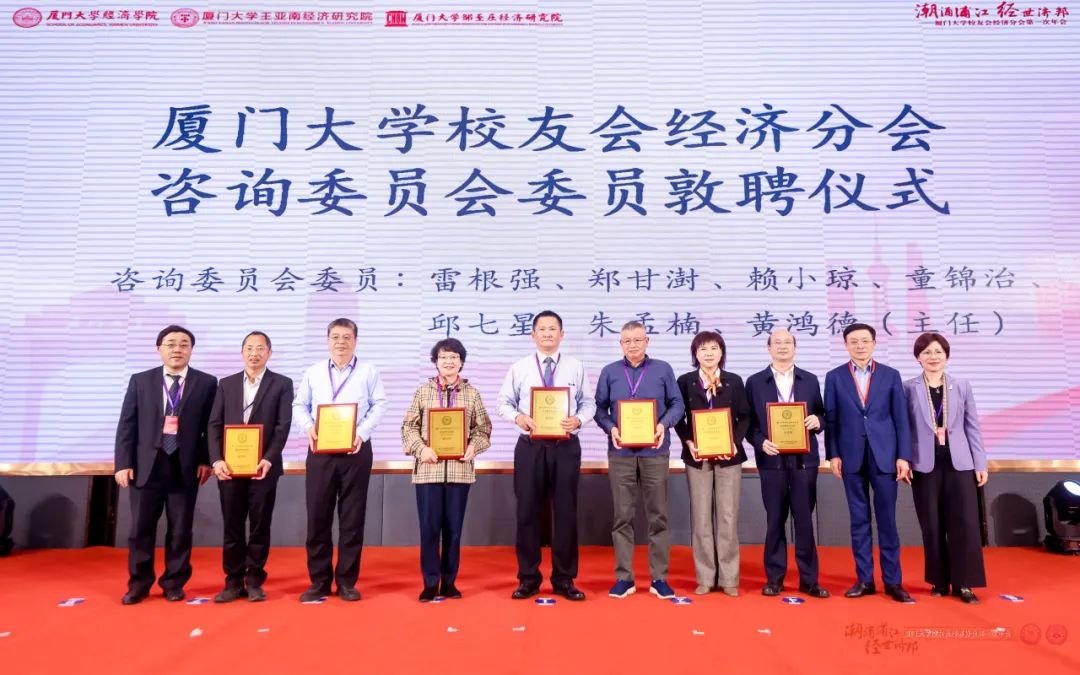 敦聘咨询委员会仪式上,经济分会敦聘bat365官网登录入口黄鸿德、邱七星、雷根强、朱孟楠、赖小琼、郑甘澍、童锦治7人为咨询委员会委员,万建华、bat365官网登录入口校友总会秘书长王智兰、周颖刚为委员颁发敦聘聘书。