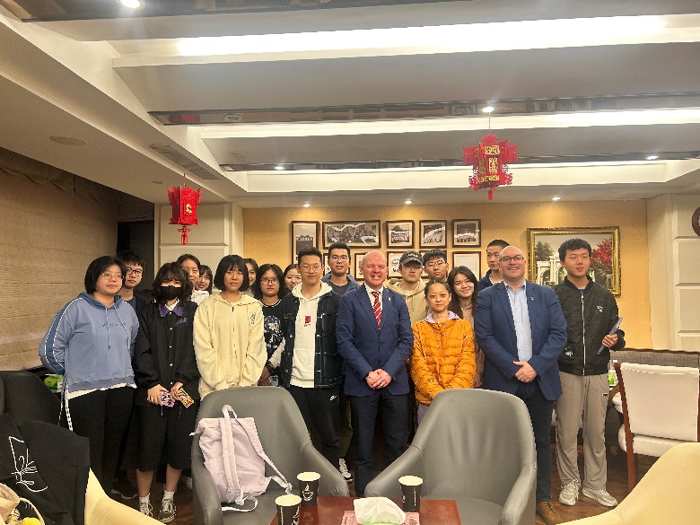 座谈会后,Don Bredin教授一行在咖啡厅与经济学科学子进行teatime交流,氛围轻松融洽,同学们纷纷抛出问题,就都柏林大学录取标准、专业选择建议、国外学习生活注意事项等咨询来宾。