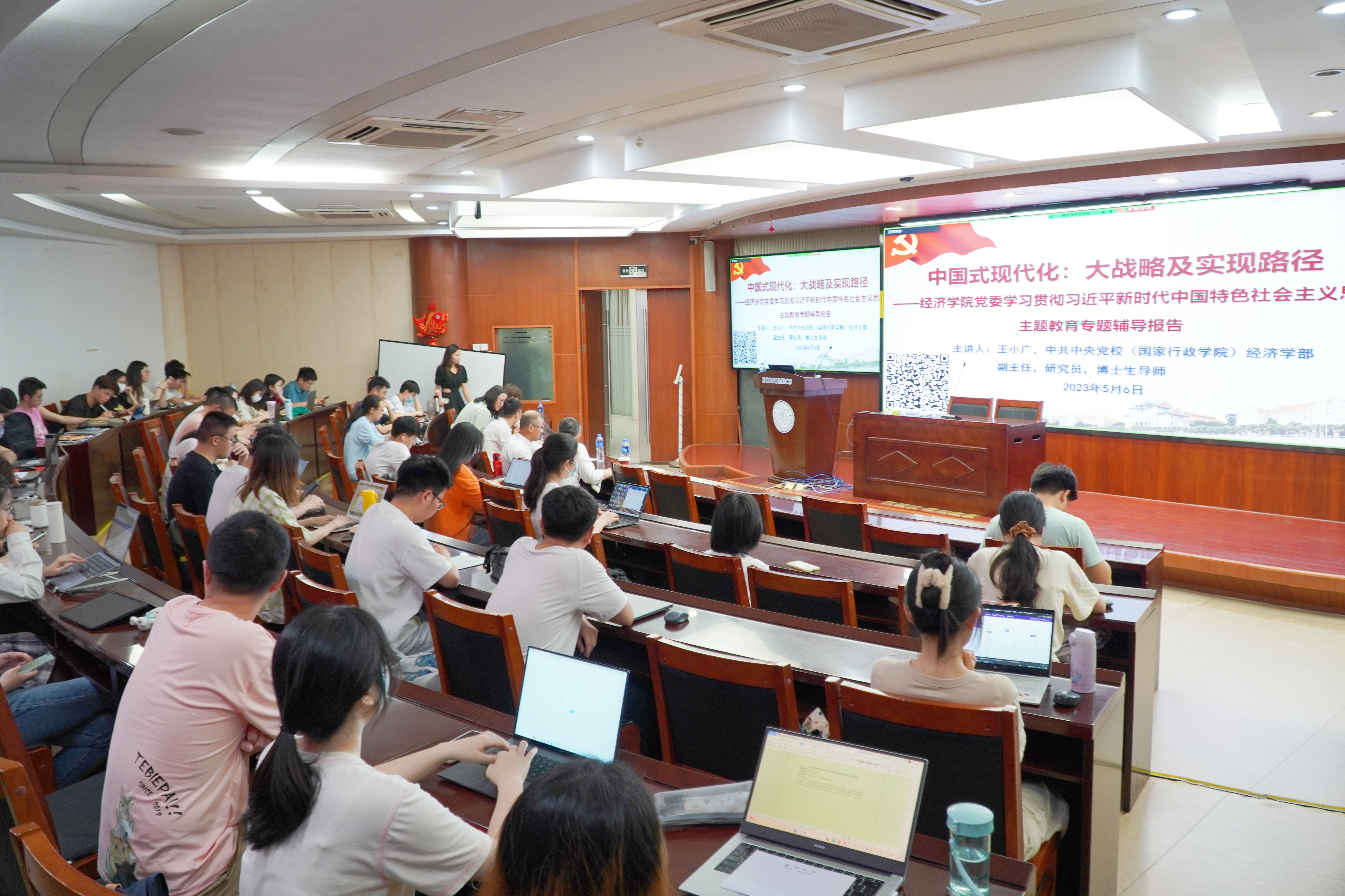 王小广以“中国式现代化:大战略及实现路径”为题,从中国式现代化的内涵、推进中国式现代化的大战略、中国式现代化的实现路径三个方面深入解读了中国式现代化的中国特色、本质要求、重大原则和实现路径,进一步加深了师生对中国式现代化理论科学内涵的理解,为深入学习贯彻习近平新时代中国特色社会主义思想提供了有力指导。