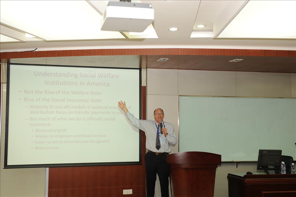 本次研讨会邀请了7位知名的专家作为特邀嘉宾带来精彩的主旨演讲,并参加分会场讨论,点评论文。在题为“Fiscal Federalism and Legislative Mal-apportionment: Causal Evidence from Independent but Related Natural Experiments”的演讲中,马里兰大学教授Sebastian Galiani以阿根廷为例,对联邦制度下的税收分配与议席分配二者之间的关系进行讨论。圣克拉拉大学教授David Friedman(诺贝尔经济学得主Milton Friedman之子)作题为“Feud as Law Enforcement”演讲,深入探讨私人解决世仇的方法作为现代法律制度逻辑起源的问题。亚利桑那大学教授Price Fishback在题为“The Rise of the Social Insurance State”的演讲中,阐明并分析美国的福利转移与社会保险的发展,并就美国社会福利基金的基本情况同北欧国家进行对比。来自马里兰大学的 John Wallis教授则以“Leviathan Denied: Rules, Governments, and Social Dynamics”为主题,探讨了建立和实施客观规则的重要性。拜罗伊特大学教授Hartmut Egger在题为“Offshoring Domestic Jobs”的主旨演讲中,分析了离岸外包对国内就业的影响效果。来自马里兰大学 的Peter Murrel教授在题为“Institutional and Cultural Determinants of Institutional and Cultural Development: Complementary Insights from Evolutionary Socioeconomic Theory and English History”的报告中,详细分析政治经济体系管理和协调中的制度和文化因素。来自世界银行的徐立新教授在题为“Local Information and the Decentralization of State-Owned Enterprises in China: Hayek is Right”的演讲中,以1998?2007年我国国有企业改变隶属关系为例,测试了哈耶克的关于市场机制对获取本地信息的重要性。