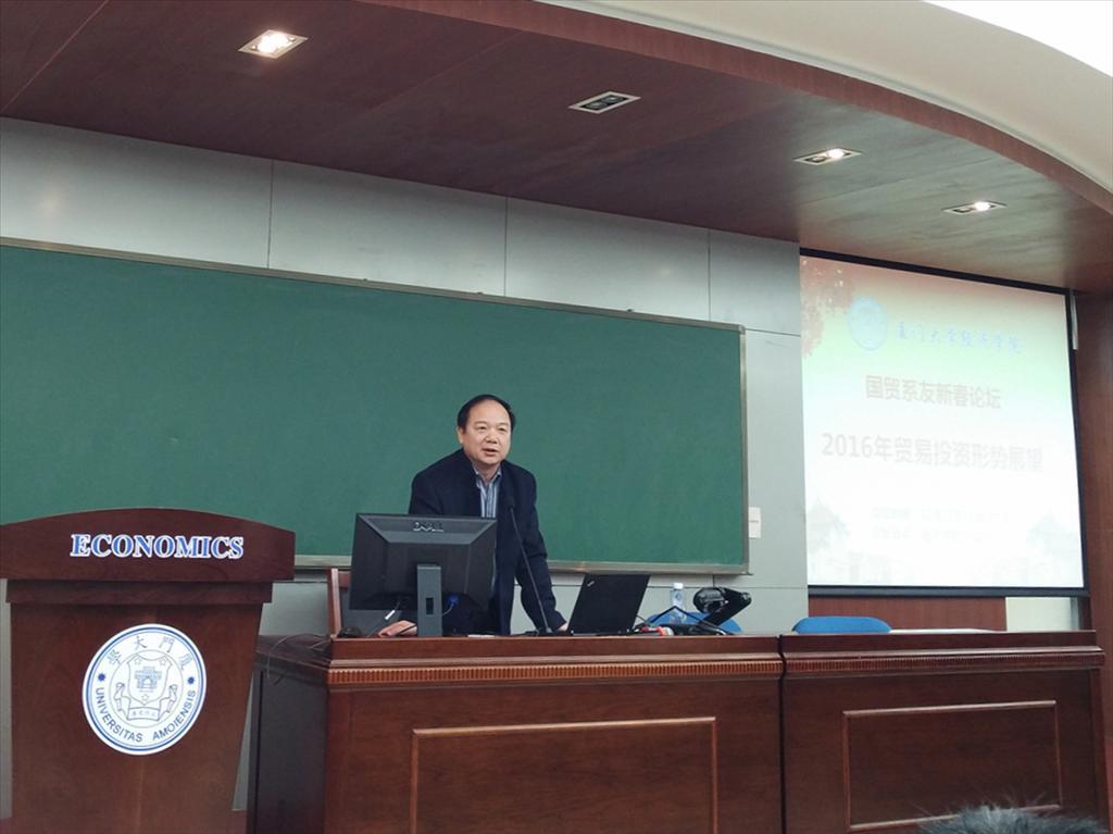 在系友对话环节,1989级系友郑永达为大家带来了业界的经验分享。他表示,现在贸易行业和过去大不相同,不仅要做好供应链服务的立身之本,还要与金融结合,寻求新的利润增长点。随后,国际经贸系郑甘澍老师、系友代表刘晓吉、刘志滔、黄达其、林张林、韩立军等从不同的角度纷纷发言,各抒己见,对2016年的我国贸易投资形势进行了展望。