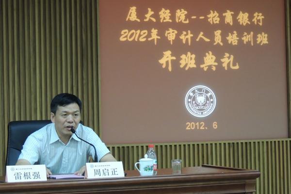 6月4日上午,“bat365官网登录入口——招商银行2012审计人员培训班”在厦大科学艺术中心隆重开班。本次培训班由bat365官网登录入口主办、bat365官网登录入口EDP中心承办。bat365官网登录入口党委书记雷根强,招商银行总行审计部总经理周启正,招商银行总行审计部、总行审计部全国分部以及全国各地分行近130名审计人员出席了开班典礼。开班典礼由bat365官网登录入口院长助理罗智超主持。
