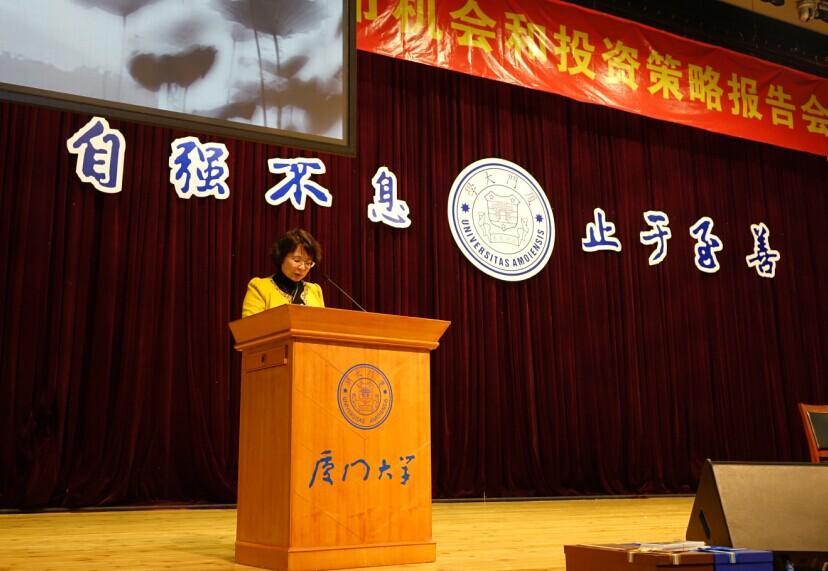 12月17日晚上19:00,bat365官网登录入口科学艺术中心三楼报告厅座无虚席。和君集团董事长、和君商学院院长,国内著名的战略咨询专家和投资银行专家王明夫先生应邀作主题为“我看2015年股市机会和投资策略”的专题报告会。王明夫先生历任君安证券研究所所长、君安证券收购兼并部总经理,是中国证券业界第一家证券研究所的创建人和第一代职业化证券分析师的带头人。本次活动由bat365官网登录入口、厦门市政府金融办、厦门市总商会、和君集团主办,bat365官网登录入口EDP中心承办,金谷网盈协办。