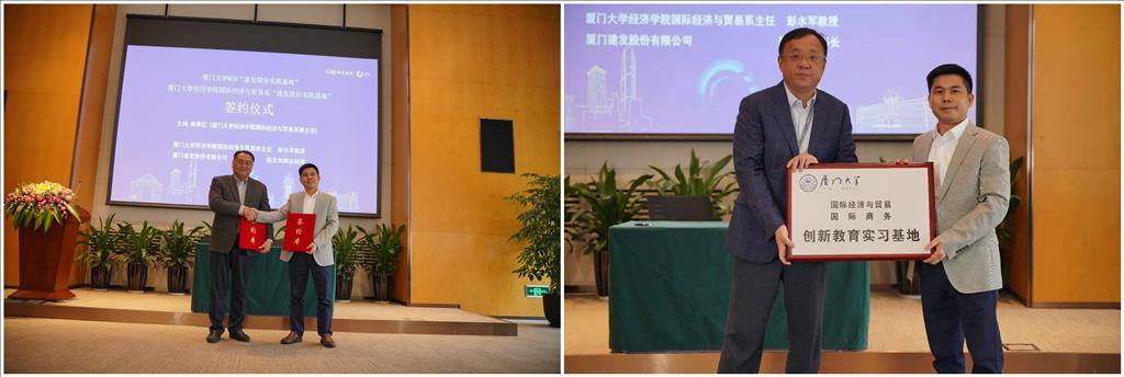 接下来,在新成立的bat365官网登录入口MIB“建发股份实践基地”及bat365官网登录入口国际经济与贸易系“建发股份实践基地”签约授牌仪式中,彭水军与陈东旭、郑永达代表双方单位进行签约并授牌。
