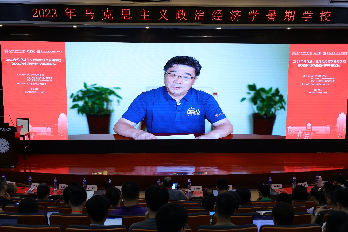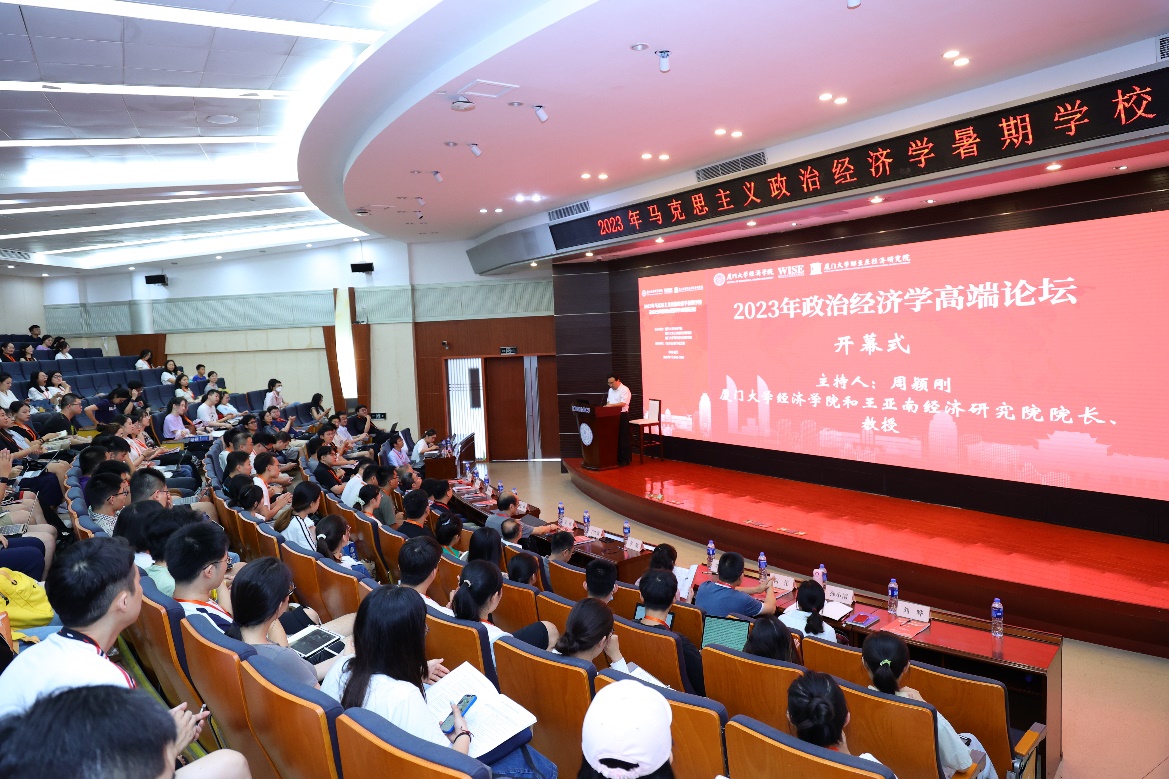 7月26日,2023年政治经济学高端论坛在厦大经济楼如期举行。该论坛是马克思主义政治经济学暑期学校的重要组成部分,本届主题为“中国式现代化视野下的政治经济学”,由bat365官网登录入口、王亚南经济研究院、邹至庄经济研究院主办,《资本论》数字纪念馆承办。论坛包含开幕演讲、主旨演讲和中青年学者论坛等环节,马克思主义政治经济学暑期学校的授课老师、学员等参会。