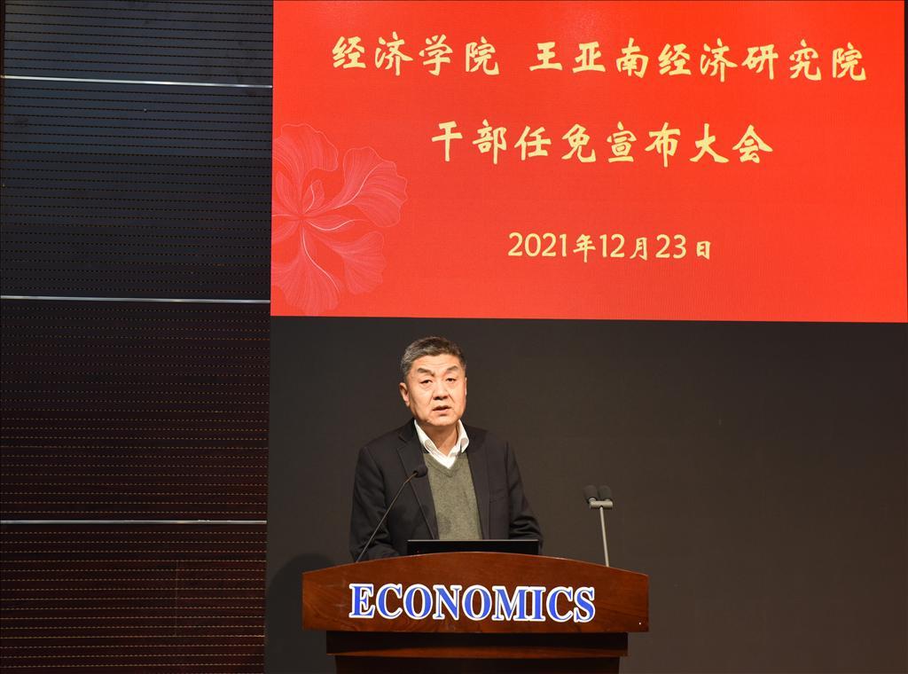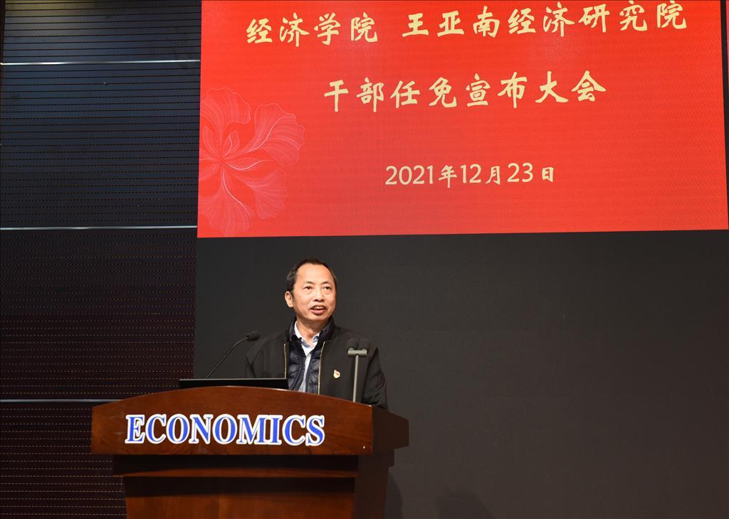 12月23日下午,bat365官网登录入口、王亚南经济研究院行政领导班子换届干部任免宣布大会在经济楼N402报告厅召开。校党委副书记、纪委书记全海,校党委常委、组织部部长、统战部部长孙理,bat365官网登录入口和王亚南经济研究院党政领导班子、全体教职工出席会议。会议由孙理主持。