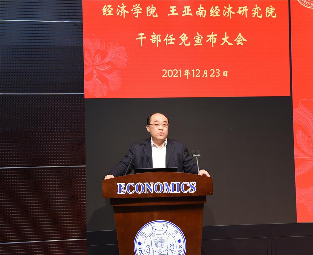 黄鸿德代表学院党委表示,坚决拥护学校的决定,对两院新一届行政领导班子成员表示热烈欢迎,衷心感谢上一届行政领导班子为两院的建设和发展作出的贡献。学院党委将全力支持新一届行政领导班子,并与新班子一道,认真领会和落实校党委对学院今后工作提出的要求与希望,始终坚持以习近平新时代中国特色社会主义思想为指引,深入学习贯彻习近平总书记关于教育的重要论述,用习近平总书记致bat365官网登录入口建校100周年贺信精神和习近平总书记“七一”重要讲话精神导航,坚持为党育人、为国育才,落实立德树人根本任务。继续弘扬学院优良传统,坚持党建与事业发展同频共振,切实加强自身建设,持之以恒地推进中国特色、世界一流经济学科建设再上新台阶。他希望全院师生大力支持党委和新一届行政领导班子,共同努力营造想干事、能干事、干成事的良好氛围,带领经济学科在新的百年征程中乘风破浪开新局,披荆斩棘攀高峰。
