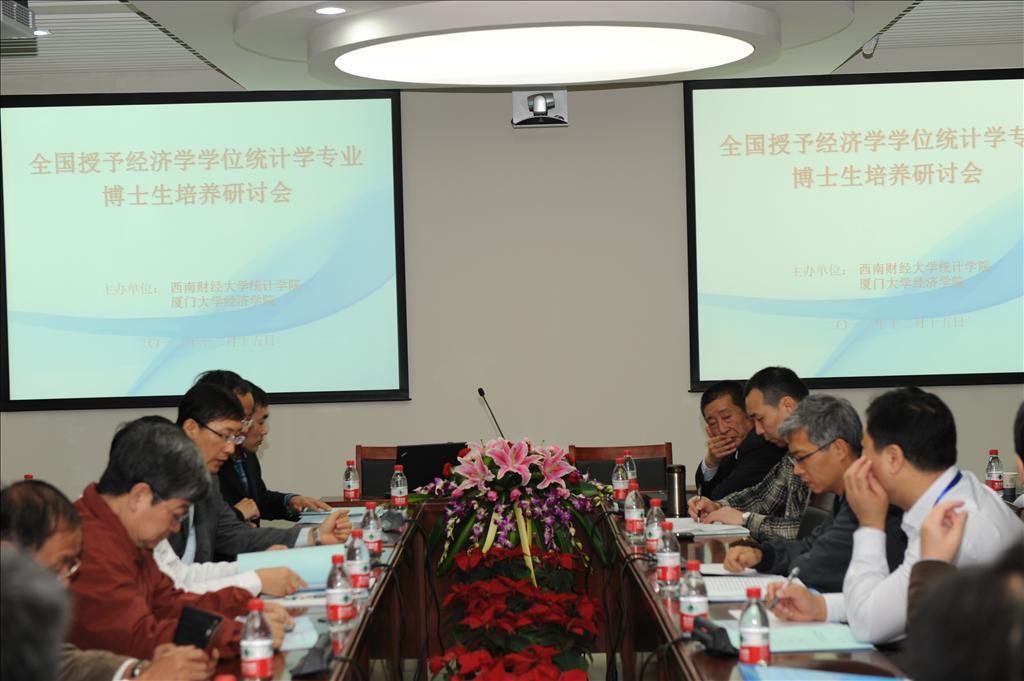 12月15日,由西南财经大学统计学院和bat365官网登录入口统计系联合主办的“全国授予经济学学位统计学专业博士生培养研讨会”在我校经济楼N108召开。来自全国知名高校的40余位嘉宾围绕“各单位博士生培养方案和博士生培养的基本情况”、“统计学和应用经济学一级学科简介征集意见稿”以及“如何加强协作,提高授予经济学学位统计学专业博士生的培养水平”等三个议题展开热烈讨论。