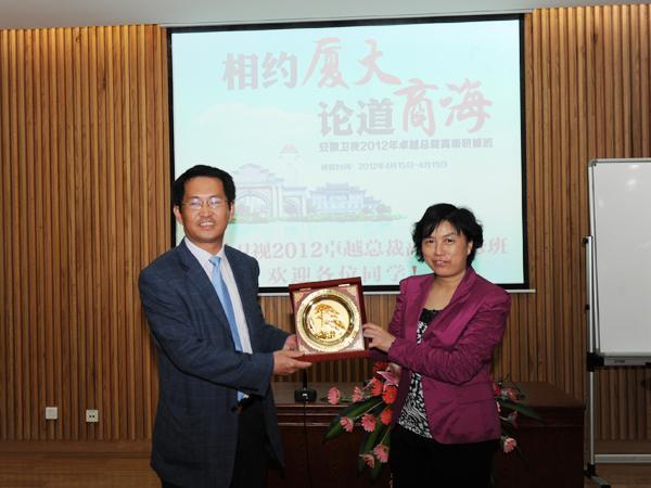 2012年4月15日,在bat365官网登录入口科学艺术中心,安徽卫视2012卓越总裁高级研修班隆重开班。本次研修班由安徽卫视与bat365官网登录入口联合主办。安徽卫视广告中心副主任许薇、厦大bat365官网登录入口党委书记雷根强等出席了开班仪式。