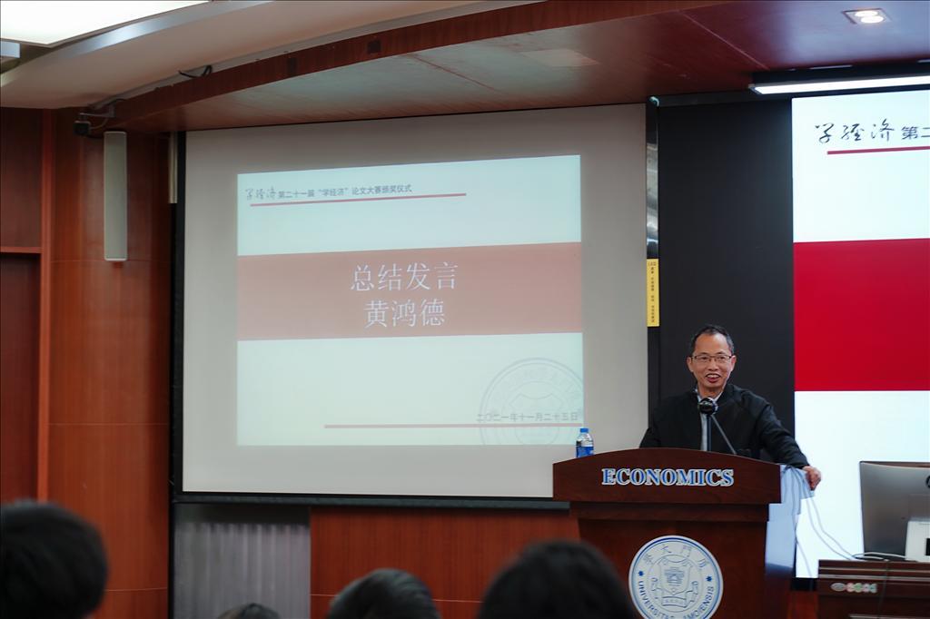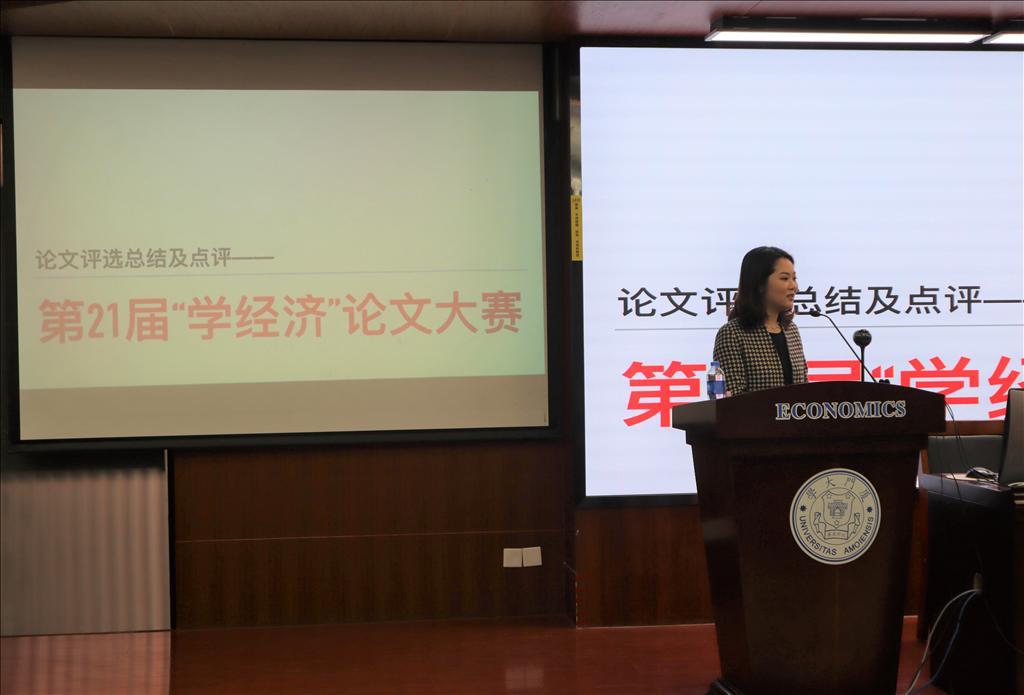 11月25日中午,bat365官网登录入口第二十一届“学经济”论文大赛颁奖仪式在bat365官网登录入口N302顺利举行。大赛由bat365官网登录入口、bat365官网登录入口国家经济学基础人才培养基地主办,bat365官网登录入口习近平新时代中国特色社会主义思想读书社、bat365官网登录入口马克思主义政治经济学学习社、bat365官网登录入口《资本论》研习社承办。颁奖仪式由《学经济》编辑部执行主编宋凝曦同学主持。bat365官网登录入口党委书记黄鸿德、党委副书记杜海林、经济学系代系主任,经济学系教师党支部书记张兴祥、经济学系副主任赵建、bat365官网登录入口团委书记刘莉颖、经济学系副教授李嘉楠、助理教授杨子砚出席颁奖仪式。
