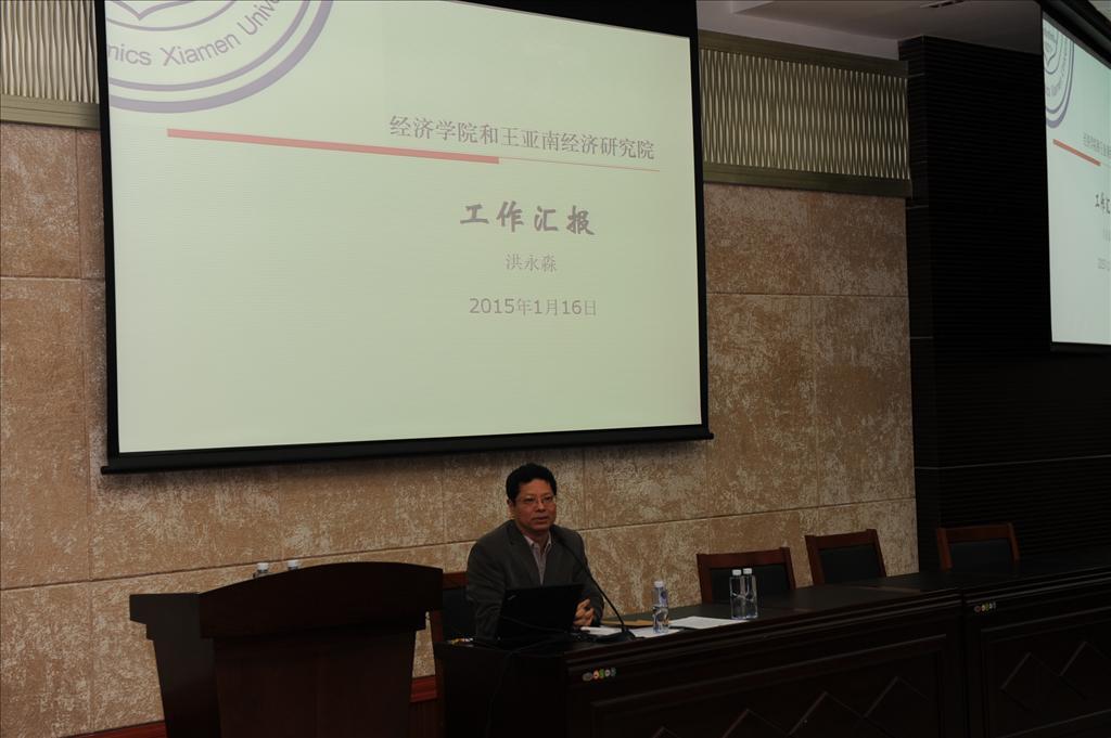 1月16日下午,bat365官网登录入口和王亚南经济研究院(WISE)在经济楼N402召开2014年度总结大会。bat365官网登录入口与WISE洪永淼教授汇报了2014年度两院的基本工作情况,并对目前存在的主要问题与困难进行了分析,同时对2015年度两院的主要工作任务作了展望。bat365官网登录入口党委书记雷根强转达了两院于1月14日召开的2014年度处级以上党员领导干部民主生活会情况。总结大会由雷根强主持。