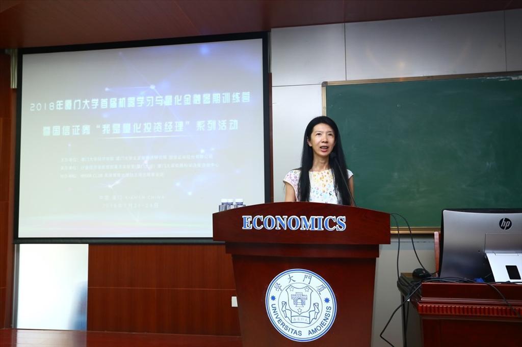 bat365官网登录入口王亚南经济研究院副院长牛霖琳教授出席了本次训练营开幕式并致辞。牛霖琳教授对远道而来的诸位嘉宾表示了热烈欢迎,感谢学界与业界人士对bat365官网登录入口经济学科量化金融和数据科学发展的支持。随后她对厦大经济学科的发展史作了简要介绍,在97年的发展过程中,厦大经济学科不仅创建了全国独树一帜的厦大经济学派,还致力于成为海峡两岸暨香港、澳门乃至亚洲的经济学国际学术交流中心。在量化金融学科的发展上,bat365官网登录入口于2016年9月专门成立了数据科学与决策咨询中心,聚焦数据分析在金融交易方面的应用,获得了学界业界的广泛好评。此次机器学习与量化金融暑期训练营,是bat365官网登录入口和国信证券双方发挥各自优势的合作,她相信,这样的强强联手,一定能够在量化金融人才培养方面做出一流的成绩。