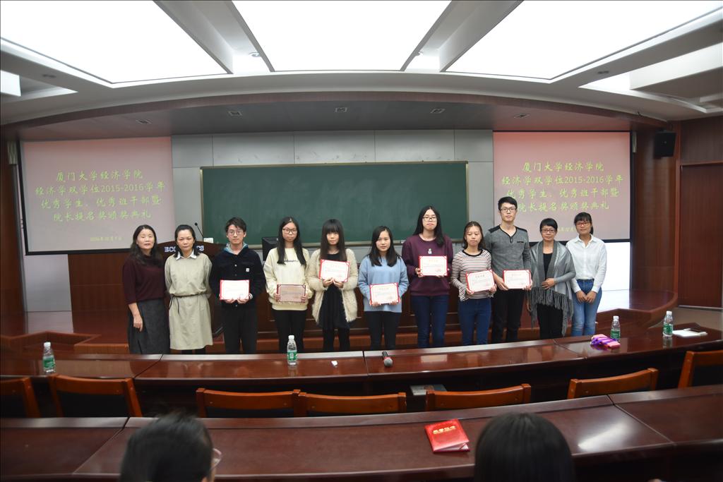 12月9日, 2015-2016年度(暨第六届)经济学双学位优秀学生、优秀学生干部以及院长提名奖的颁奖仪式在经济楼N302举行。洪永淼教授、朱孟楠教授、王艺宏老师及莫长炜副教授出席本次颁奖仪式。