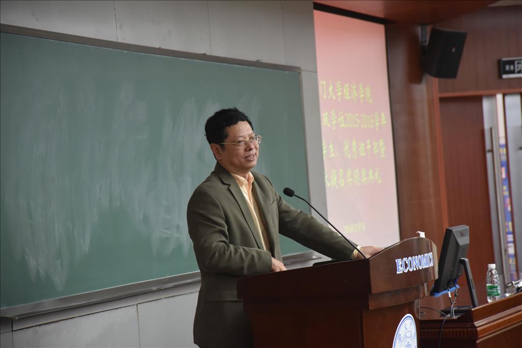 朱孟楠老师首先发表致辞,对获奖同学表示祝贺,并肯定同学们利用节假日和周末等大量时间学习双学位课程所付出的努力,他表示,在学习经济学双学位之际付出的努力,定会在未来的工作和生活中得到回报。