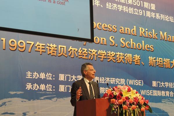 Myron S. Scholes教授在讲座中就当前中国金融风险管理的现状,结合自己多年来的研究成果,分别从金融风险转移、资本结构、金融模型等方面对金融风险管理等热点问题展开了讨论。