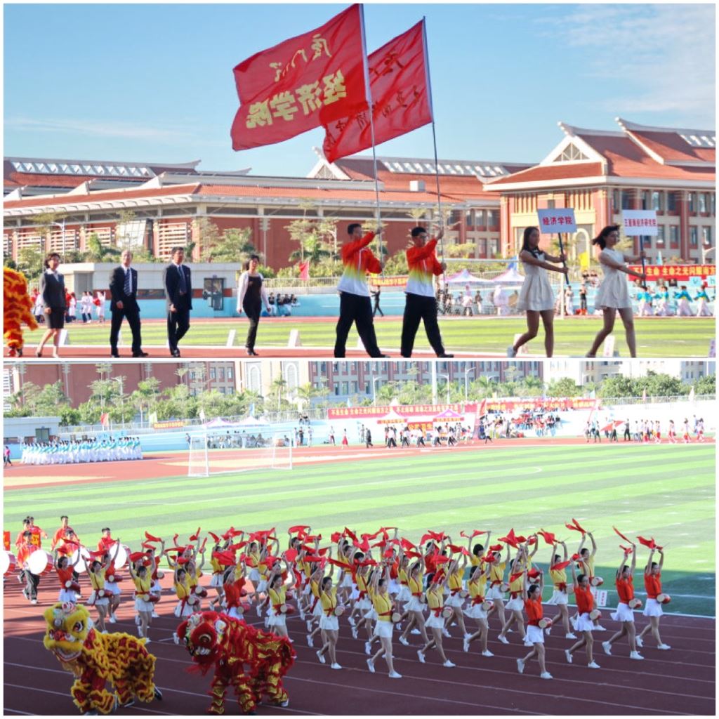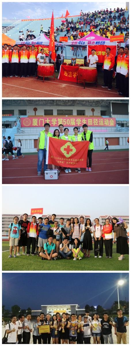 赛场上运动员挥洒汗水,你追我赶,赛场边观众们齐声加油,锣鼓喧天。经院学子在运动会中表现出高度的凝聚力和顽强不屈的拼搏精神。