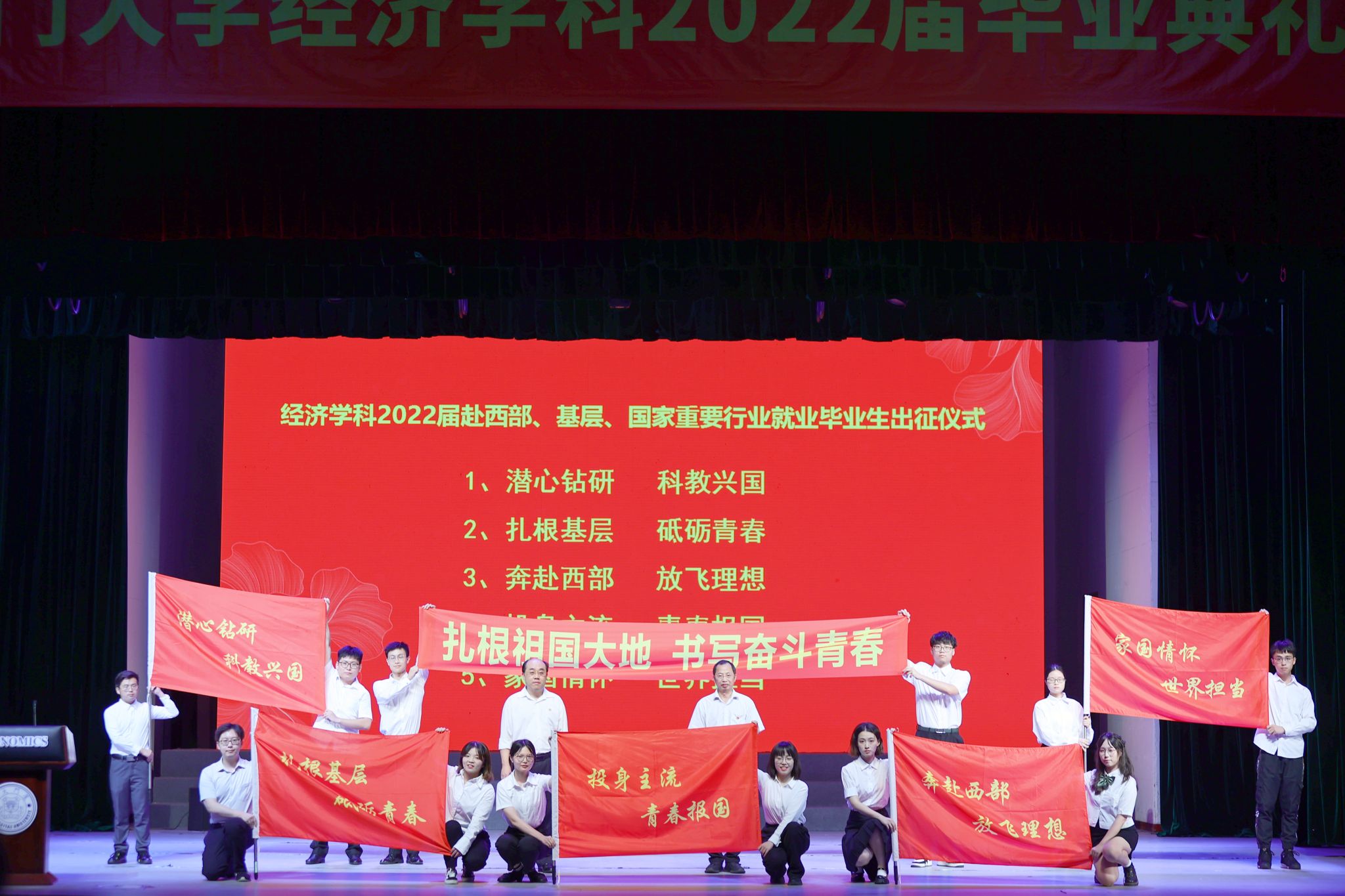 随后,典礼上举办2022届赴西部、基层、国家重要行业就业毕业生出征仪式。bat365官网登录入口党委书记黄鸿德、两院副院长(主持工作)周颖刚为毕业生代表授旗,为无私奉献的他们点赞,祝福他们能够在祖国的各个地方贡献自己的力量,彰显青春风采。