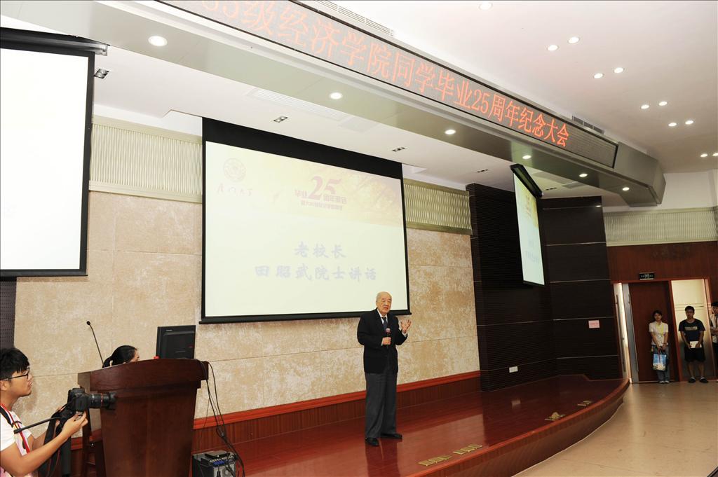 85级校友当年的老校长田昭武院士上台致辞表示,85级同学从高考入学到如今,一晃30年时间,从当年的青葱学子到如今的社会栋梁,变化巨大。30年来,由于各位的努力才成就了今日的成功事业,同时也离不开大学4年中老师的教诲,老师的教学水平、质量,都在如今各位的身上所体现。与当年相比,现在又有了更长足的进步,而所有的进步都离不开国家的发展,因此希望在座各位同学热爱祖国,放眼世界。最后,田校长以毕业歌中的歌词,给同学们以诚挚的勉励:“同学们,同学们,快拿出力量,担负起天下的兴亡。”