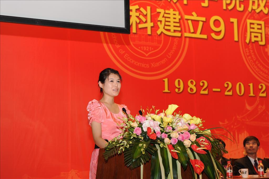 学生代表、2011级硕士生王琳在致辞中感谢母院的老师和同学,憧憬了经院未来的发展,并代表经院学子强调了青年人的担当与责任。