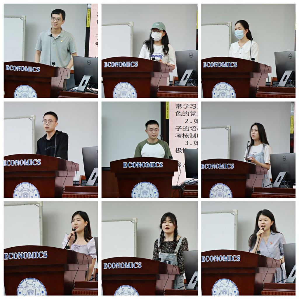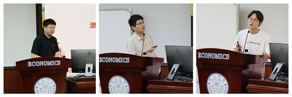 随后,3位学生党支部书记分别围绕支部日常管理、支部特色活动策划和党建活动新闻稿撰写等主题开展交流。经济学科2020级博士生党支部书记赵海以“注重激励与平衡:打造团结有力的党支部”为题,分享了支部在入党积极分子培养、支部管理等方面的经验,展示了如何构建支部入党积极分子动态培养考核体系。金融系2019级硕士生第一党支部书记耿玉刚用丰富的案例生动说明了如何写好活动请示、怎样调动支部成员积极性以及如何做好宣传工作,为支部开展好特色活动“传经送宝”。宣传工作是党建工作的喉舌、利剑,生动凝练和宣传学生党建工作,对推动学生党建工作高质量开展具有重要意义。经济学系2020级硕士生党支部书记王艺在分享中结合丰富案例和自身实践,细致讲解了学生党建活动新闻稿的标题、首段、主体、结尾四个部分的写作思路,强调撰写党建新闻要提高政治站位,苦练写作内功。