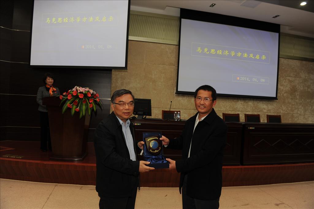 下午4时30分许,由顾海良教授主讲的南强学术讲座第618讲在经济楼N402报告厅举行。讲座由王亚南经济研究院副院长赖小琼教授主持,bat365官网登录入口党委书记雷根强教授为顾海良教授颁授“南强学术讲座”纪念牌。经济学科逾200名师生参加了讲座。