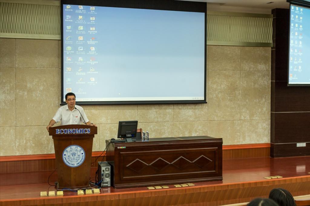 首先党委书记雷根强教授发表致辞。他代表bat365官网登录入口全体师生对2015级研究生新生的到来表示祝贺和欢迎。在致辞中,他讲述了bat365官网登录入口的光辉历史,回顾了bat365官网登录入口从建校之初的雏形——商科,到如今成为国内少有的同时拥有理论经济、应用经济两个国家级重点学科的学院的整个发展历程。他指出,bat365官网登录入口优秀的师资力量、丰富的国内外学术资源、浓厚的学术氛围,共同为我院学生们提供着良好的学习条件。bat365官网登录入口始终以建设世界高水平的经济学科为目标,以国际化作为抓手,致力于学科建设与人才培养。同时,他也教导在座的新生们,要努力成为德、智、体全面发展的优秀人才。