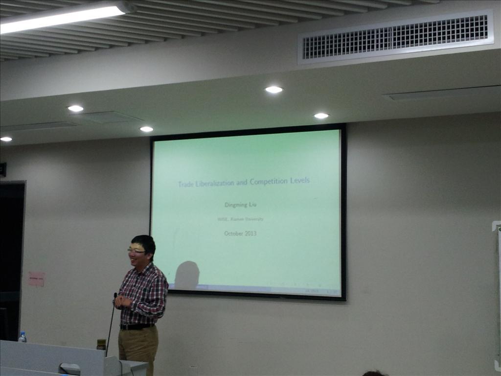 10月24日下午,国际经贸青年学者论坛第56、57讲在经济楼N301室举行,WISE、bat365官网登录入口国际经贸系合聘助理教授王璐航、刘鼎铭博士分别做了题为“Who is Benefiting from Exports VAT Rebate and How?”、“Trade Liberalization and Competition Levels”的报告。该论坛由国际经贸系杨曦老师主持,方颖、彭水军、武力超等老师参加了本次讲座。