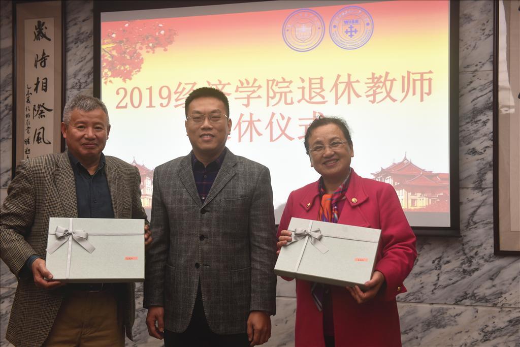 荣休仪式伊始,黄鸿德书记首先发表致辞,对光荣退休的各位老师多年来在教学岗位上兢兢业业,教书育人,为经济学科的发展所做的贡献表示衷心的感谢,并代表bat365官网登录入口向两位老师敬献鲜花。