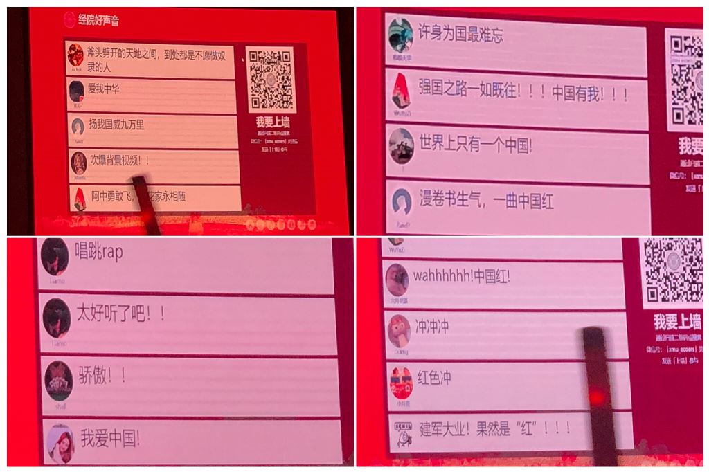 本次汇演设有“上墙留言”线上互动平台,后台在表演过程中收到并展播观众留言5000余条。“许身为国最难忘,扬我国威九万里”“漫卷书生气,一曲中国红”“祝愿亲爱的祖国永远繁荣富强,我辈定不负时代使命”……许多祝福留言在礼堂两侧的电子屏幕“刷屏”,字里行间洋溢着同学们的爱国激情与逐梦情怀。演出结束后,有一位观众接受采访时说“bat365官网登录入口组织的这次文艺汇演非常好,以不同的表演形式全面展示了伟大祖国随时代的发展变化,期间发生的动人故事使我很受感动,更激发了我努力学习科学文化知识来投身报国的决心”。负责文艺汇演筹备过程的同学深有感触道“为了演出的完美呈现,我们团队细分为各个小组,比如演策组、视频组、演出组等等。所有人拧成一股绳,心往一处想,劲儿往一处使,想展现经院学子昂扬向上的精神风貌,表达迎接中华人民共和国70年华诞的喜悦心情,向同学们传递奋斗新时代的精神力量。”